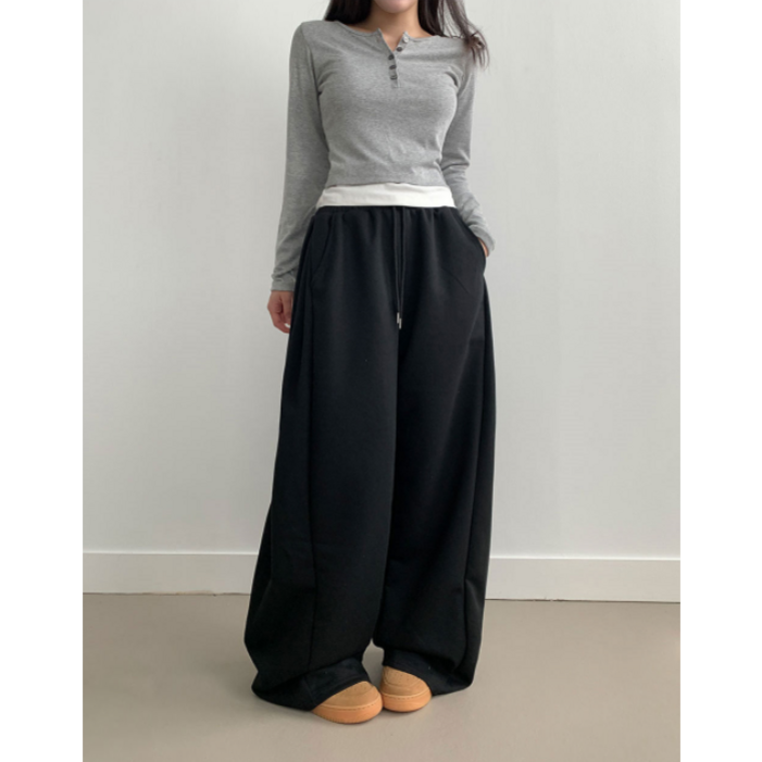 부기샵 팬츠 군살커버 퍼트 사이드 폴링 핀턱 와이드 트레이닝 롱팬츠