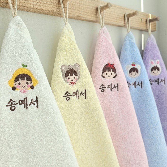 쁘띠맘 파스텔핸드타올5장 어린이집수건 40수 코마사 이름자수 고리수건 네임수건 타올 수건 유치원수건