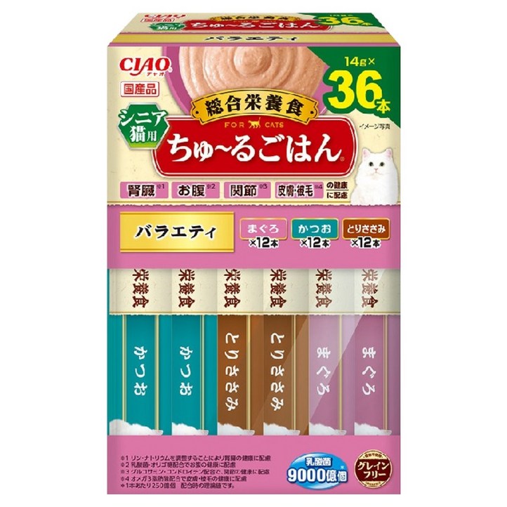 챠오츄르 고양이 이나바 챠오 츄르고항 종합영양식 시니어용 버라이어티 짜먹는 간식 36p 박스타입 SC480